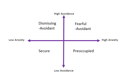 According to Bartholomew (1990) this would yield four possible attachment styles in adults; secure, dismissing, preoccupied, and fearful-avoidant (see Figure, below.)